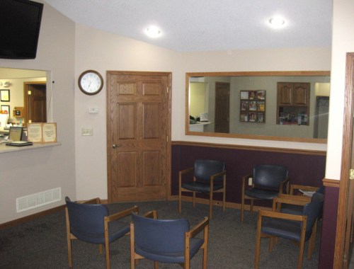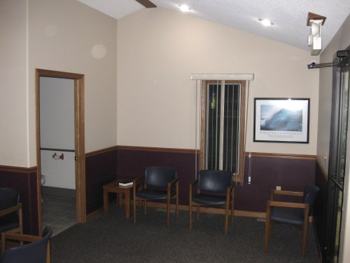 The door in the bottom left corner is the entrance from outside. Upon walking through the door, patients are greeted by this view.