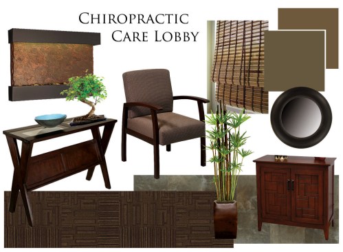 A few weeks ago I let on that I had taken on a freelance client for interior design services, as you can read in this post. Now I’m ready to spill all the exciting details! I was contacted by a local chiropractor who expressed interest in “revamping” his office. He asked if that was something I would be interested in helping him with. It was quite difficult to restrain my excitement as I calmly said, “Of course!!” After meeting with him and his staff to learn the function of each space in the office, we discussed ideas for a short time and I was off, floor plans in hand. Although the building already has a great flow and adequate patient space, I had to agree with the staff that a spa-inspired remodel would enhance their patient experience. The office was originally built in the 1970s, with an addition completed in the early 2000s. About two weeks after our initial meeting, I presented my ideas for what has become Phase 01, consisting of the main entry vestibule, waiting room and patient bathroom.