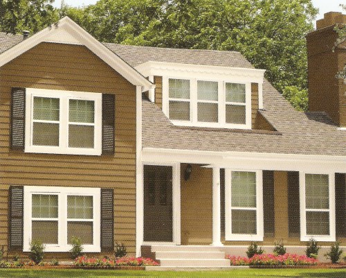 Here is a current photo of my house. Ignore the multiple colors of shingles around the windows or missing shingles. Combed cedar shingles are special order only, and we are still waiting for another bundle to finish around the large front window.