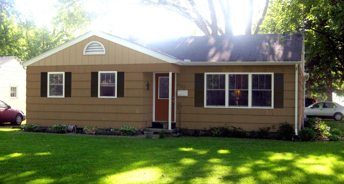 In this post debating color schemes, I showed two different paint schemes inspired from a Sherwin-Williams color book (the results would look similar to the pictures, but I tweaked the actual colors to ones I liked a little more). After this blog’s first ever reader poll, we have a winning color scheme. (You can still read a breakdown of each of the color scheme contenders in the post, You’re Invited.) Below is a photograph of a house painted with the winning color scheme.