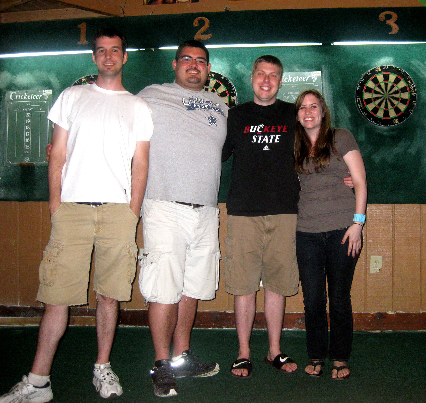 And I leave you with a photo of me and my Cincinnati friends, two of which had just graduated from UC the previous day, after a fun game of darts and a round of Killians Irish Red (further proof that I am some sort of giant):