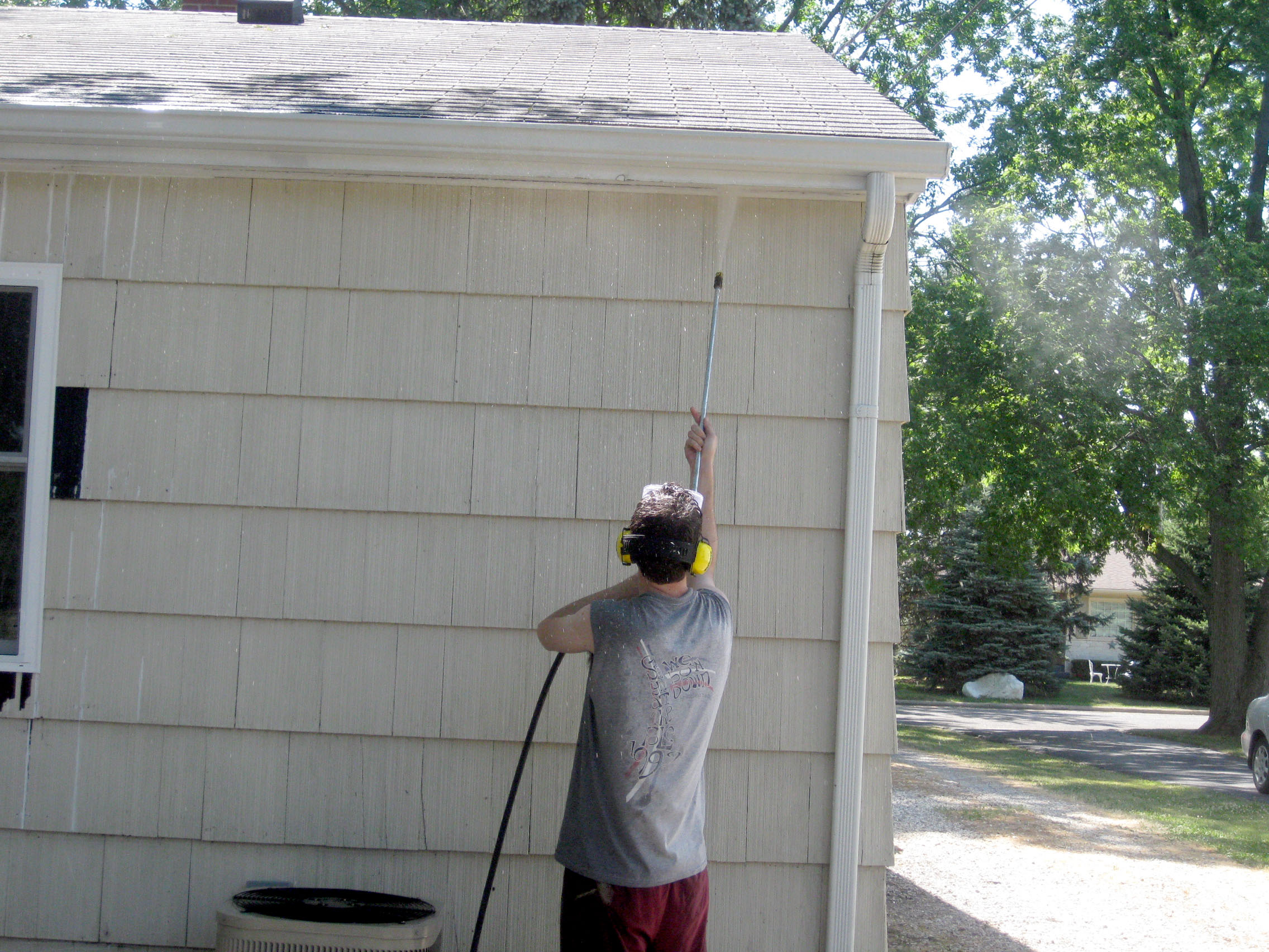 So how well did the pressure washing work? Check out how much bare wood is exposed on the south gable after being power washed. It was pretty much solid white when I began.