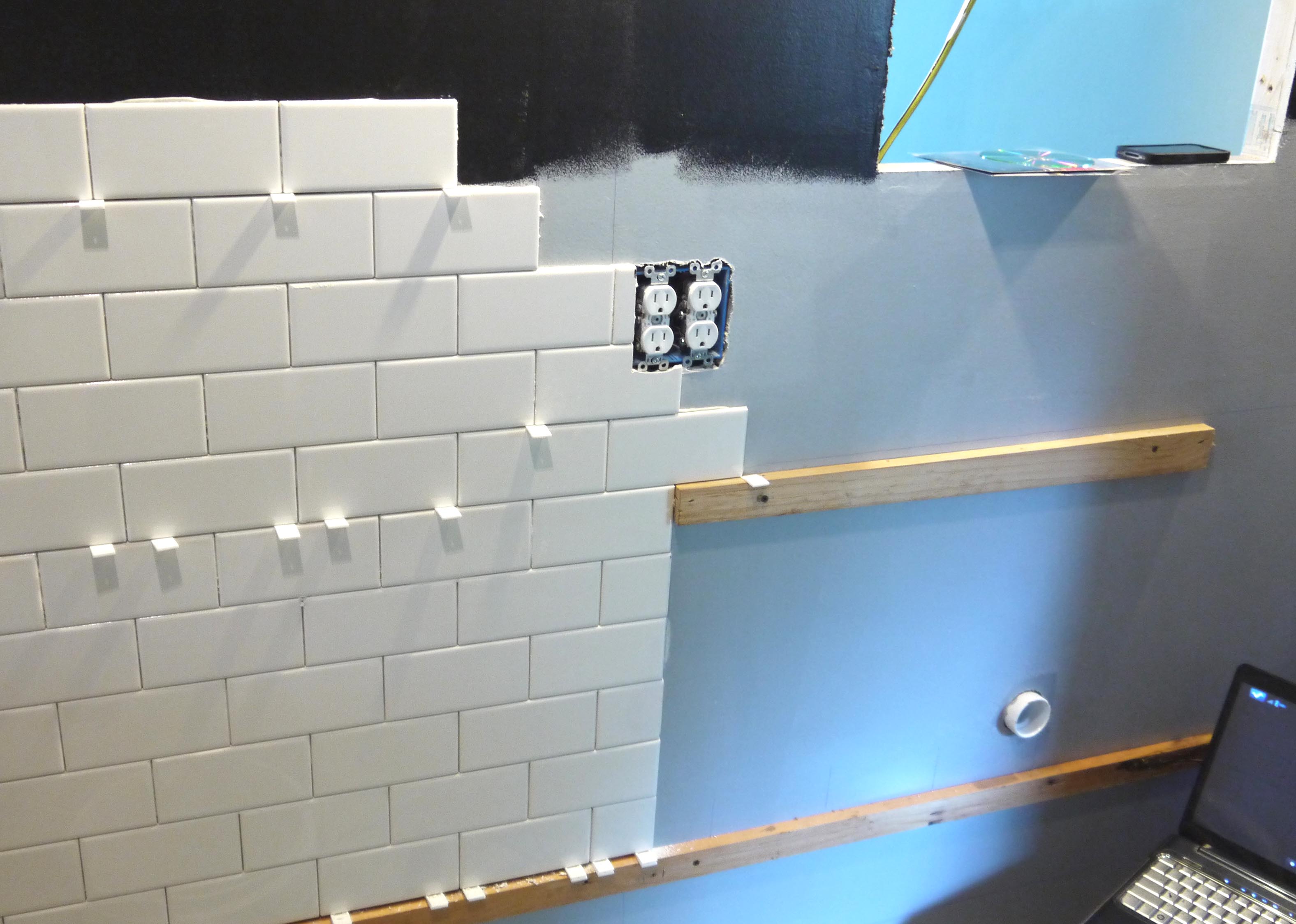Above is the closeup of the corner. I also left an 1/8th inch gap between the bottom row and the lip of the tub, as instructed by the TileMasterGA via YouTube. Rather than grout this line, it will be filled with white silicone to seal the space and create a waterproof line so water cannot get beneath the tile or behind the tub.