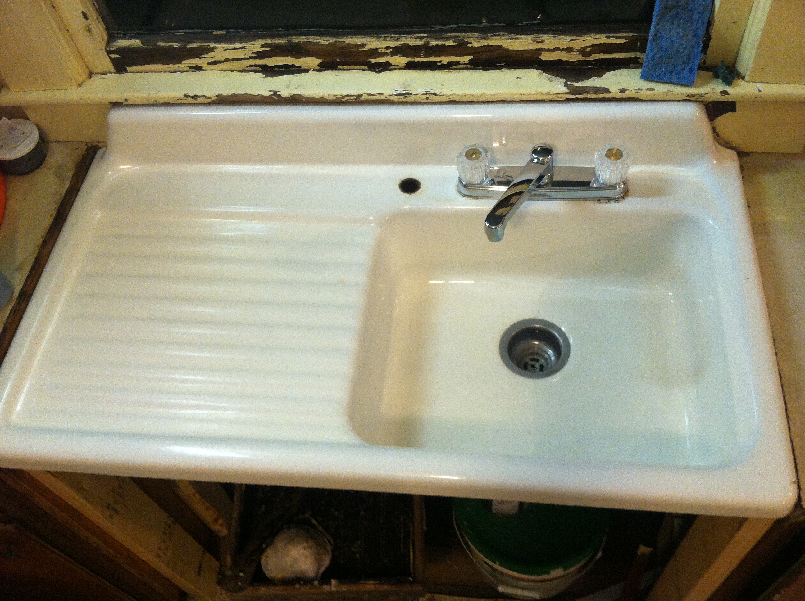 I’ve learned from the DIY host Nicole Curtis that sometimes old plumbing fixtures just need some tough love in the form of elbow grease and lots of scrubbing. I realized what she meant when it was time to either clean or scrap the old cast iron tub. So now it was onto the original kitchen sink that was still in the house.