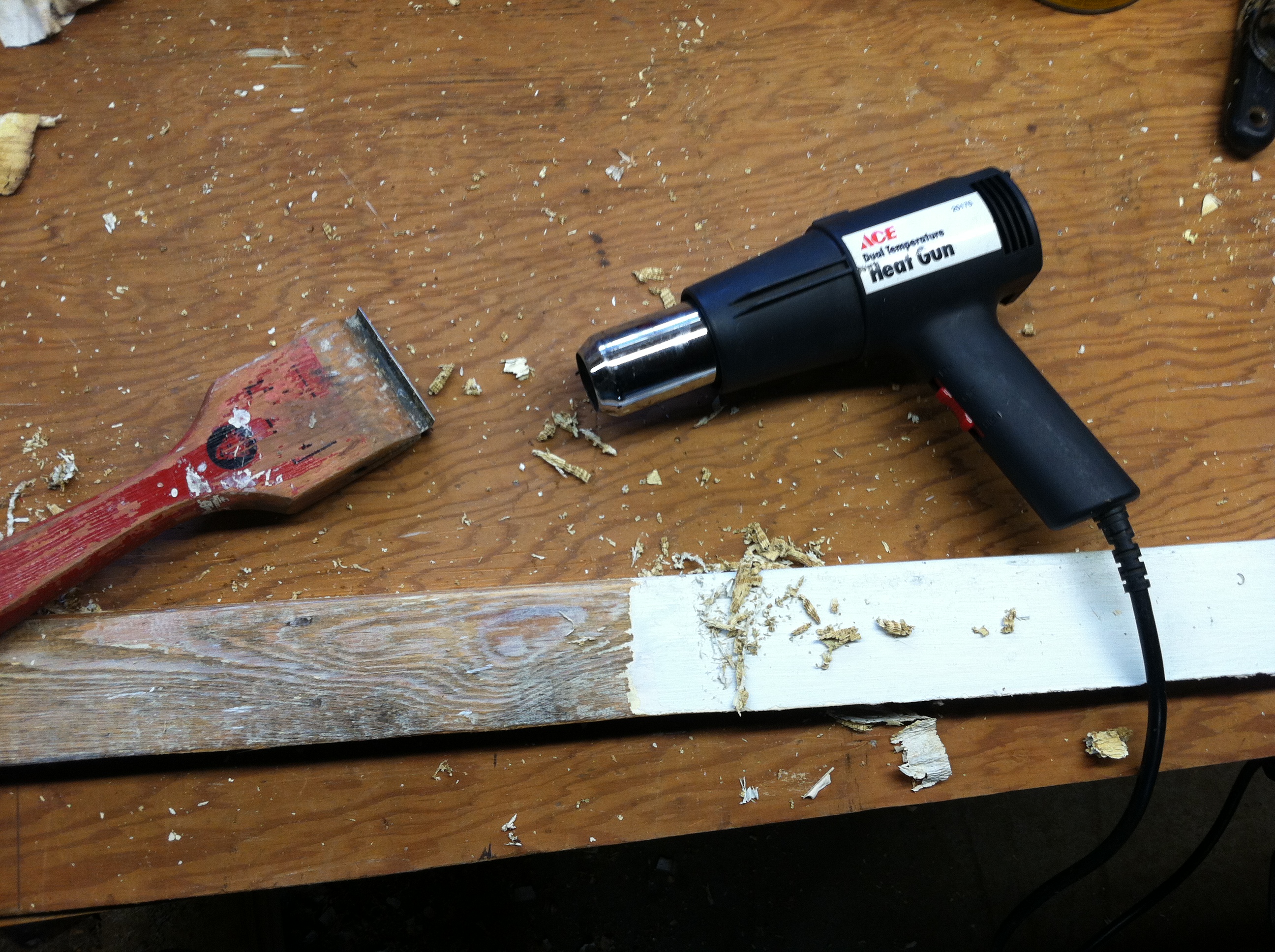 Heat, scrape, repeat. And try not to scorch the wood underneath the paint. Luckily those dark spots sanded out pretty well.