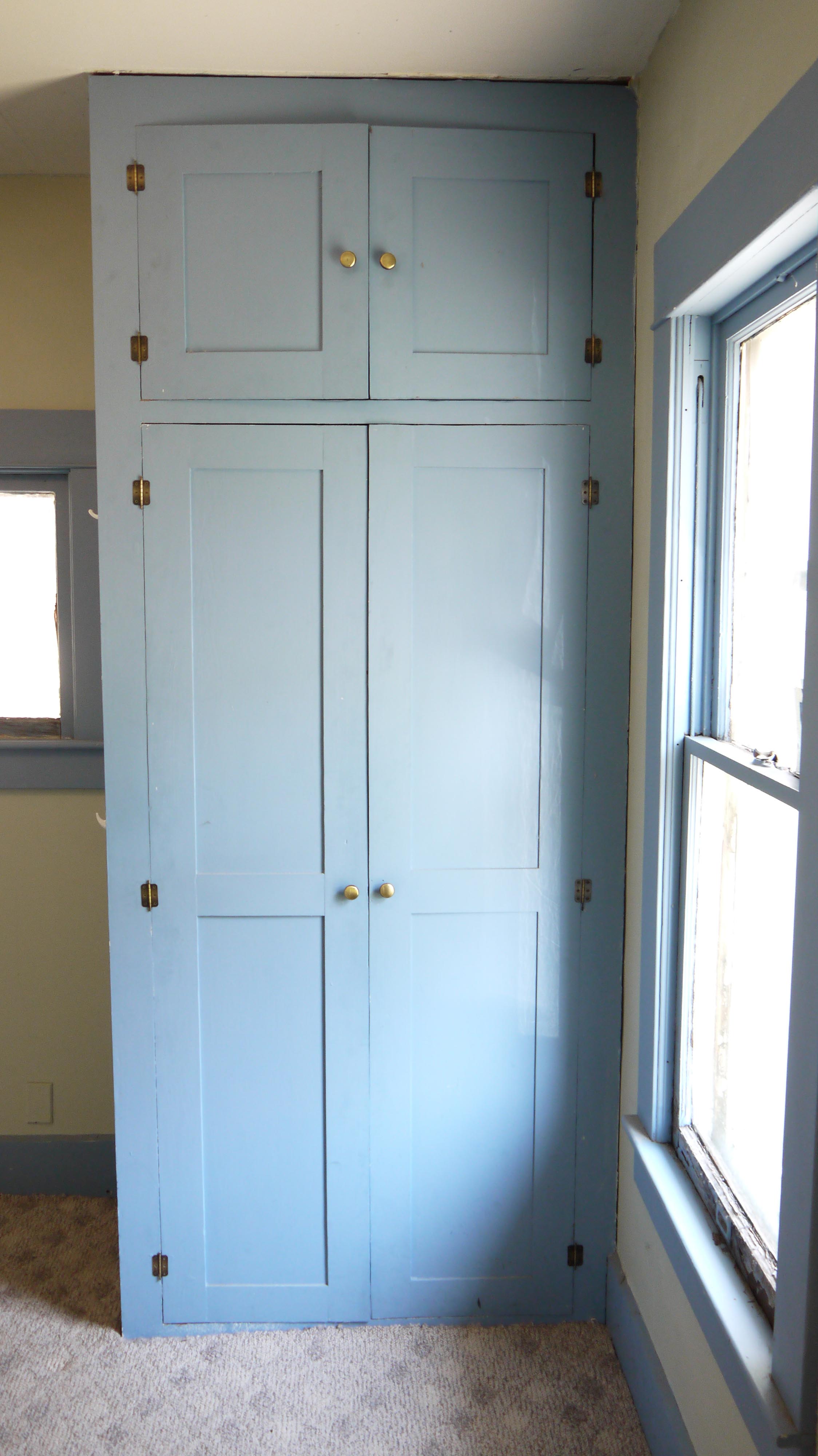 I actually think this wardrobe was inside the bathroom in this space. And that it wasn’t a doorway from this bedroom into the bathroom, but rather the wardrobe had doors on both sides. I did find spare doors in the rafters of my garage, but they don’t fit, so the mystery continues. Anyways, I plan to keep the wardrobe in the bedroom where I found it, but it needed a major overhaul.