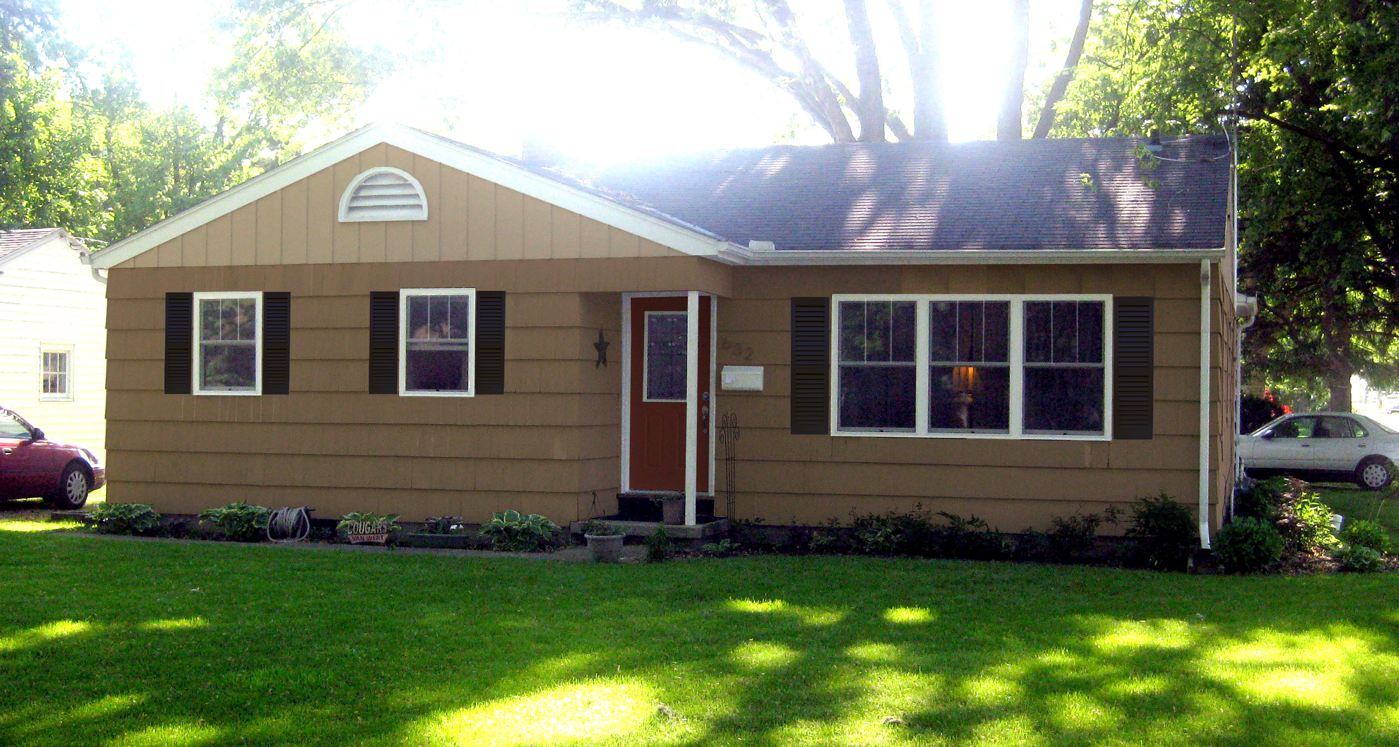 This past summer and fall, the house painting project got 90% complete; but a job and the cold weather set in before I could finish. I still have the north gable and trim, as well as the east fascia boards that are primed but not yet painted. I want to use the first few warm Spring weekends to finish painting those areas. Priming and painting the front door a spicy Fireweed red should be another short weekend project. The house currently does not have shutters, but I have envisioned adding a contrasting color by introducing shutters since day 3 (days 1 and 2 were spent bringing the bathroom and kitchen up to speed in this former beat-up rental home).