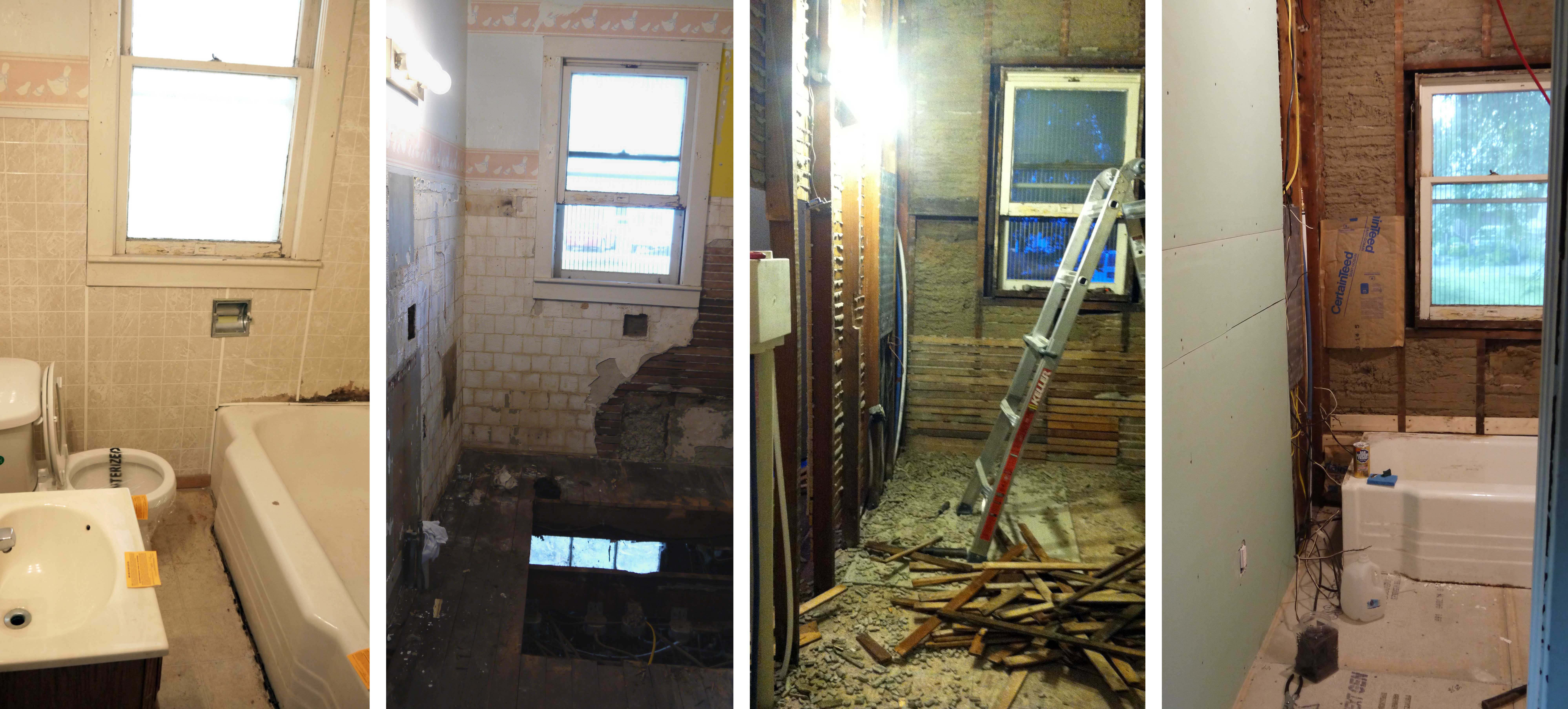 I actually got a lot done this week – kitchen sink, tub, part drywall, purchased wall tile for bathroom. But the biggest accomplishment was not mine, but rather what Dennis was able to get connected for me. The process itself is worthy of an entire upcoming post – wet floor, curse words, and a return trip to the hardware store – but for now, I’ll leave it at a single photo and one last sentence. I have hot water.
